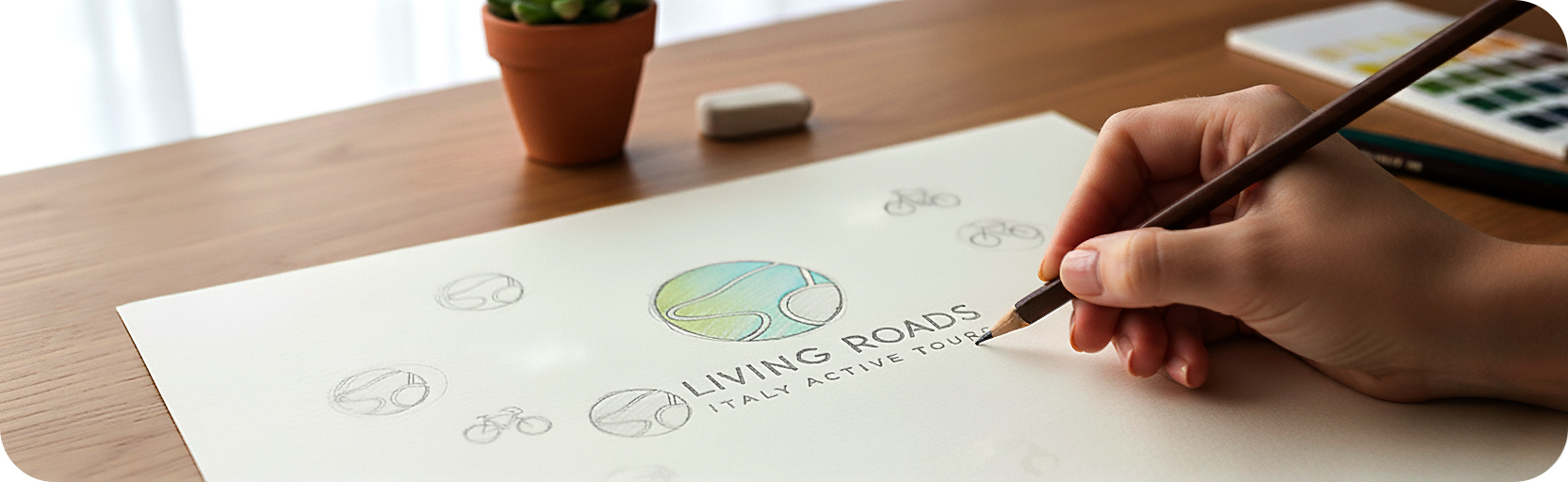 Per Living Roads abbiamo trasformato natura, movimento e viaggio lento in un simbolo elegante e dinamico, ispirato ai percorsi toscani. Un’identità che racconta un cammino prima ancora di percorrerlo.
