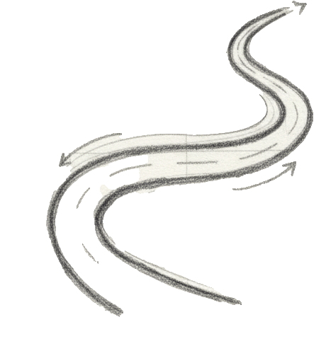 La linea sinuosa è la strada: movimento, scoperta, percorso.